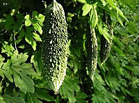 表面にイボ状の凸凹と独特の苦味が特徴で、その凸凹の部分は水分を蓄え、雨量の少ない土地に適応するようになっているのだそうです。沖縄県が主な特産地で、そのほか九州などでも生産されており、最近ではハウス栽培で各地で生産されはじめました。